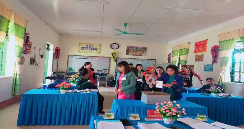 Hình ảnh đảng viên trong chi bộ tiến hành bỏ phiếu
