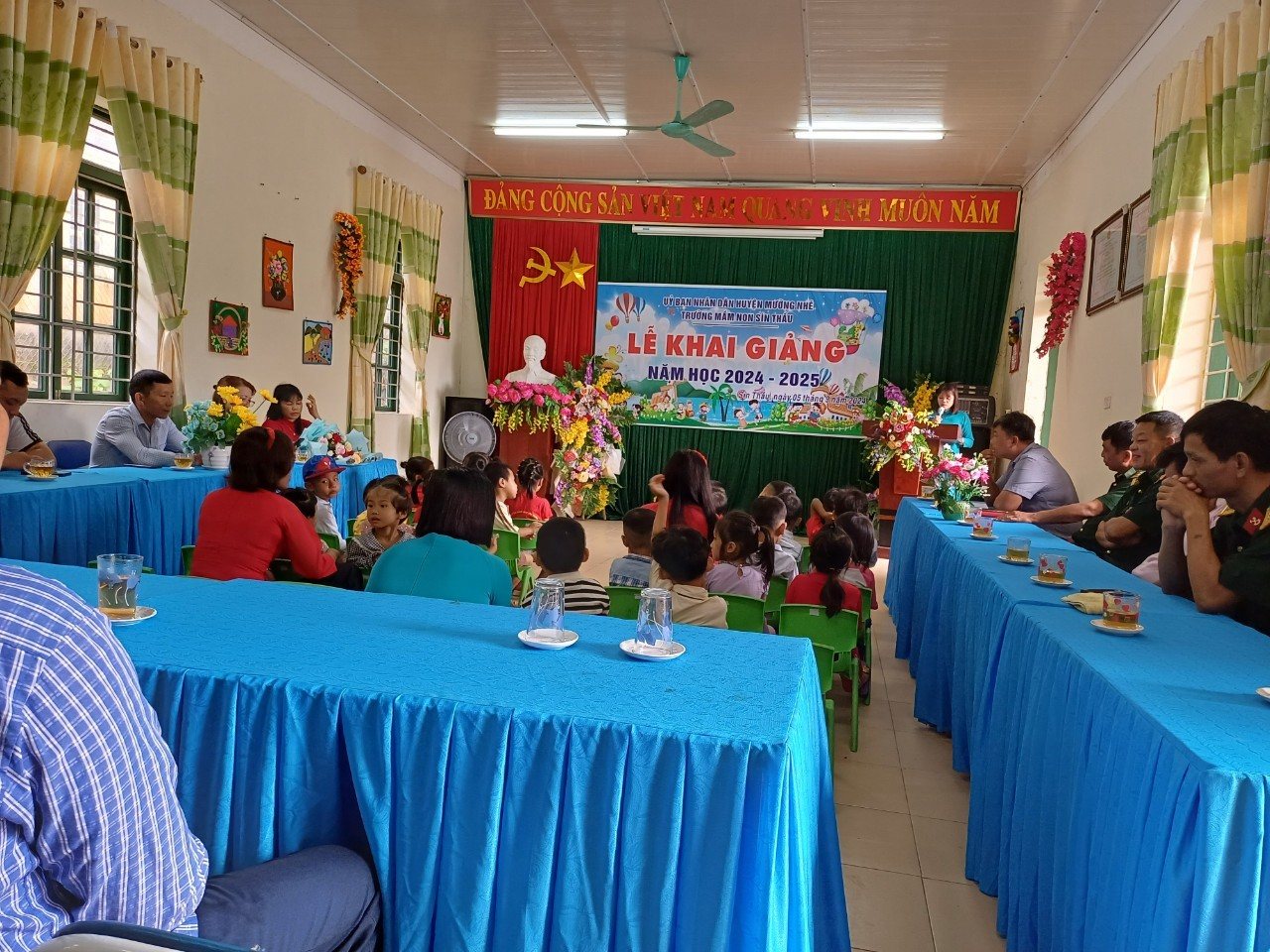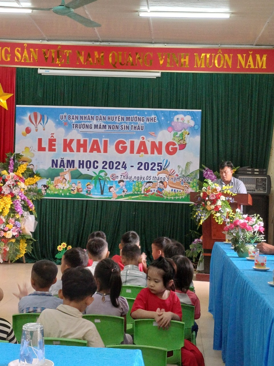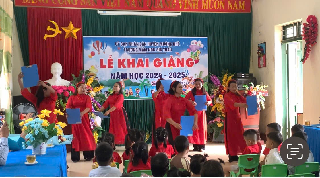Hình ảnh lễ khai giảng năm học 2024-2025 Hình ảnh các cô giáo múa bài “Em là cô giáo vùng cao” Hình ảnh các cháu mẫu giáo trung tâm nhảy Aerobic Hình ảnh Đồng chí Lỳ Tư Xá phó chủ tịch xã Sín Thầu phát biểu Hình ảnh Buổi lễ khai giảng thành công tốt đẹp